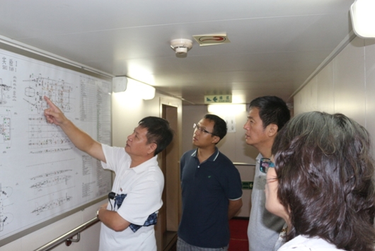 南海海洋研究所船舶處處長蔡小陽和“實驗1”號船長向三亞深海所科研人員詳細介紹了“實驗1”號的船舶結構、建造過程、船載儀器設備以及各項參數性能。同時,大家針對船舶動力系統、減震降噪功能和綜合科學考察能力提出問題,進行了詳細咨詢了解。
