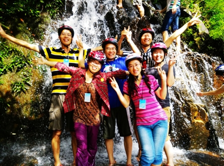 活動選址在融匯了“熱帶雨林文化、黎峒文化、南藥文化、生肖文化”等優(yōu)秀文化理念于一體的呀諾達熱帶雨林。活動中,隊員根據(jù)個人興趣和愛好,主動分為了“飛瀑組”、“索道組”和“登山組”三大組,分別體驗了踏瀑戲水、亞洲第一索道和熱帶雨林景觀。“飛瀑組”隊員攀巖涉水,齊心協(xié)力,穿越了深淵瀑布、急流險灘等多處障礙,展現(xiàn)了良好的團隊精神。“索道組”隊員互相鼓勵,面對100多米高空,毫無畏懼,勇敢迎接高空索道的挑戰(zhàn)。“登山組”相互幫助、相互扶持,充分體驗了熱帶風情美景。