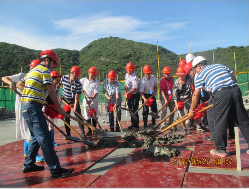 最后,參加儀式的各位領(lǐng)導(dǎo)為大樓主體工程澆筑了最后一方混凝土,封頂儀式順利完成。