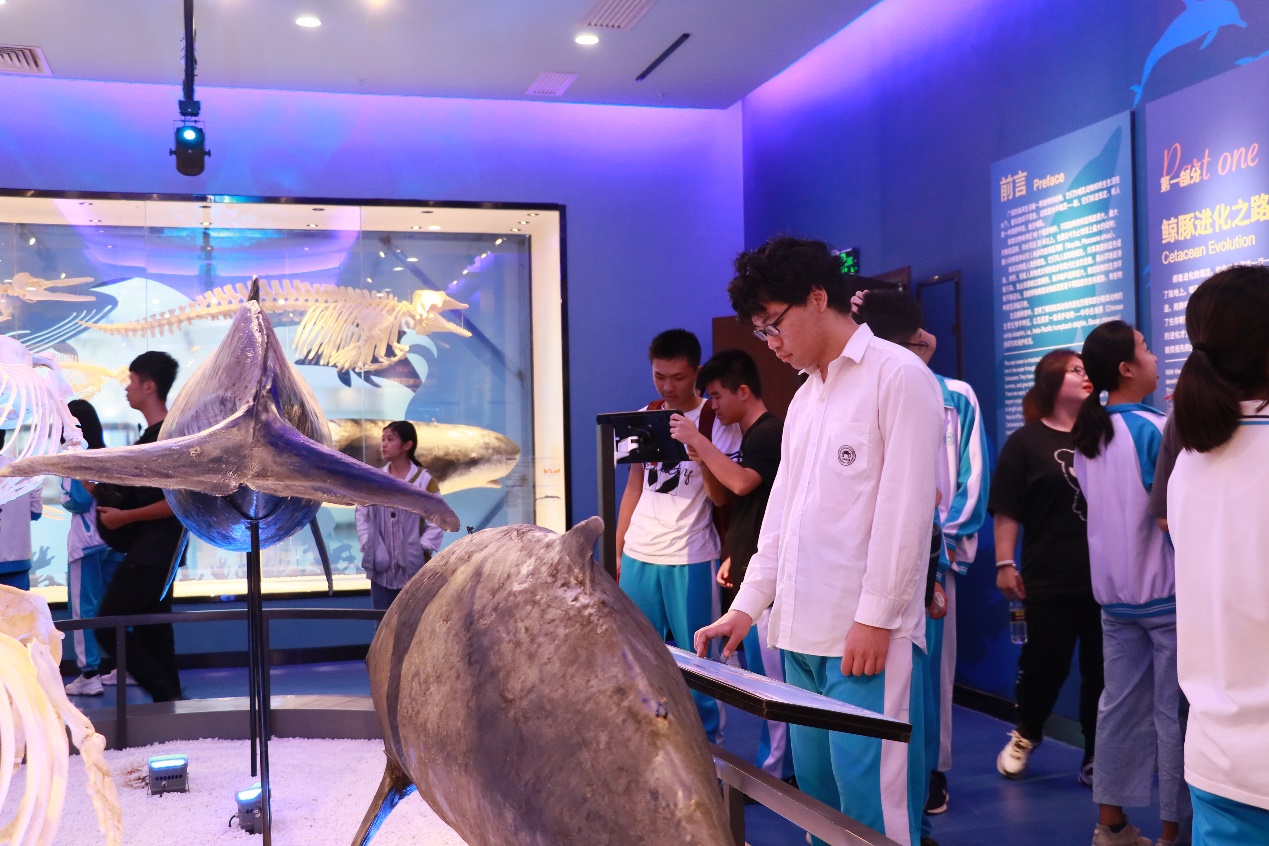 當天,潛航員李保生給同學們帶來了深海科普講座,他向同學們介紹了“深海勇士”號載人潛水器的技術參數和參加的科考航次,一邊講述自己親歷的下潛故事,一邊展示“深海勇士”號視角拍攝的深海視頻,同學們紛紛感嘆海底世界的奇妙。隨后,在工作人員的帶領下,同學們參觀了工程實驗室,零距離接觸深淵著陸器、深海機器人等深海裝備;觀看了深淵科考紀實片,感受了深淵科考的艱辛;參觀了鯨豚標本館,了解了各類鯨豚標本及海南島周邊發現的鯨豚種群。活動結束后,同學們紛紛表示對深海科學和深淵探索產生了濃厚的興趣。