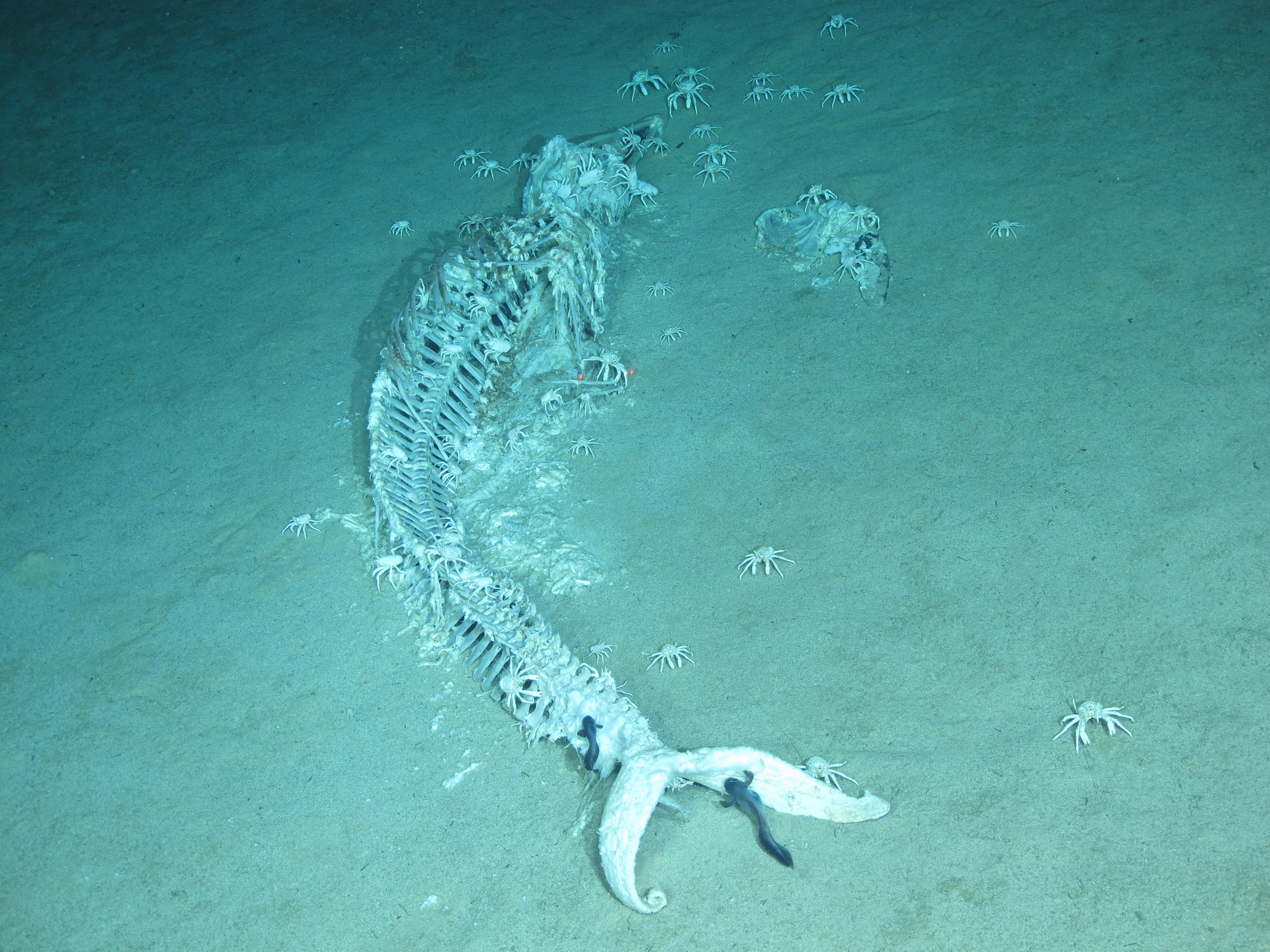 在深海海山1600米的山腰處發(fā)現(xiàn)的鯨落
