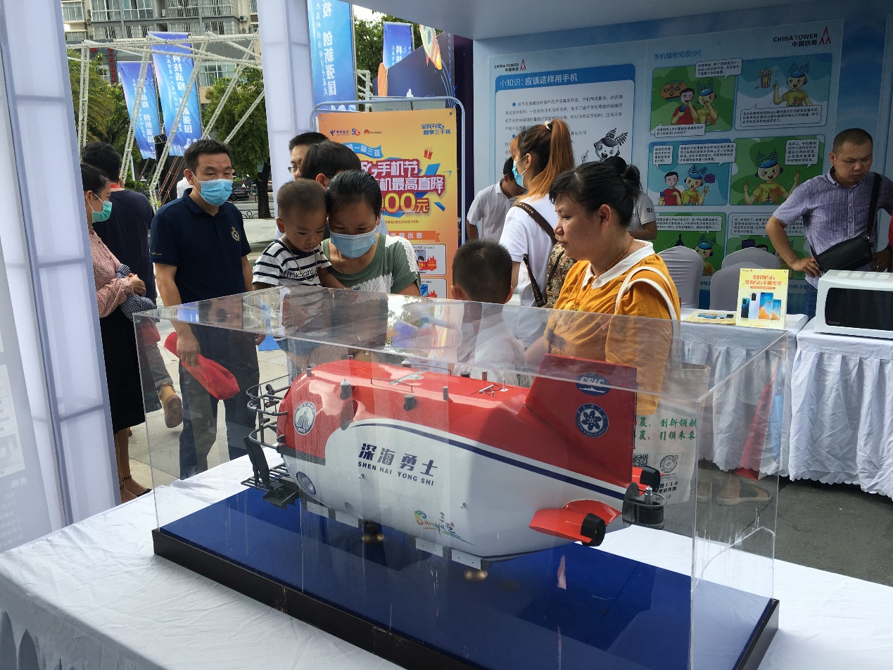 本屆科技活動月主題為“科技抗疫 創新強國”,以科技戰疫為重點,展示科學技術對戰勝疫情的重要支撐作用和系列成果,同時還展示科技創新對國家經濟社會發展的重要支撐作用;深海所受邀作為科技創新成果單位展出“深海勇士”號載人潛水器模型以及展板介紹,受到市民關注。