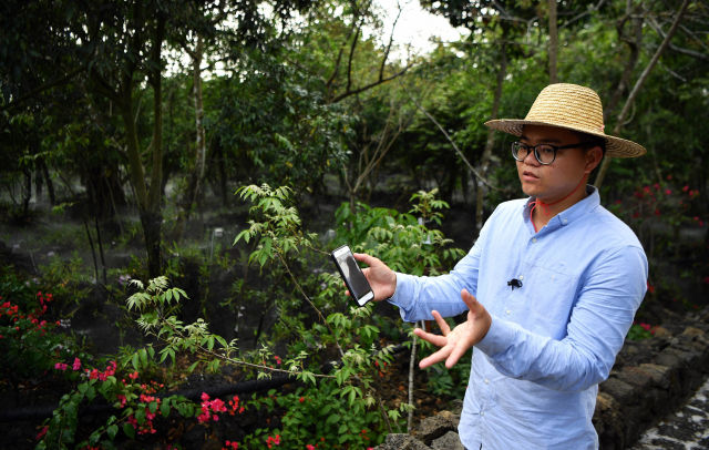隨后,習(xí)近平沿著石板路步行來到施茶村火山石斛園。施茶村村民、技術(shù)員吳清偉說:“我們向總書記介紹了現(xiàn)代化的智能噴灌技術(shù),只需要在手機(jī)上點(diǎn)擊開關(guān),就可以給石斛進(jìn)行澆灌,總書記聽完高興地稱贊說這個(gè)很方便。”