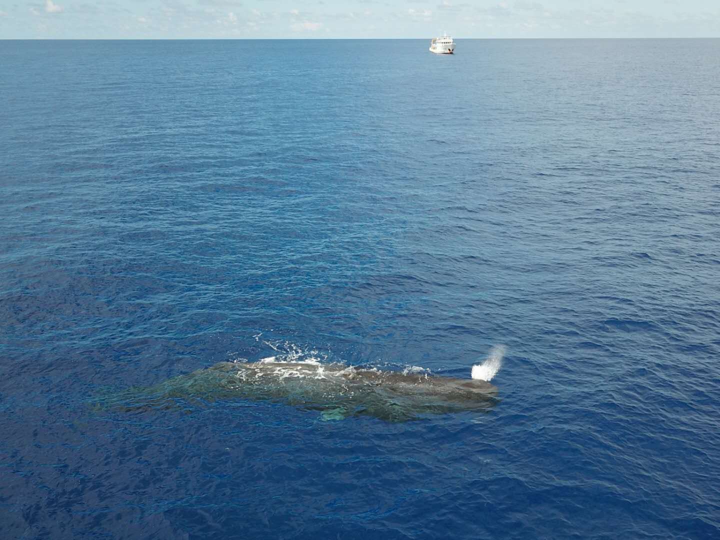 這是7月24日在南海某海域拍攝的抹香鯨(無人機(jī)照片)